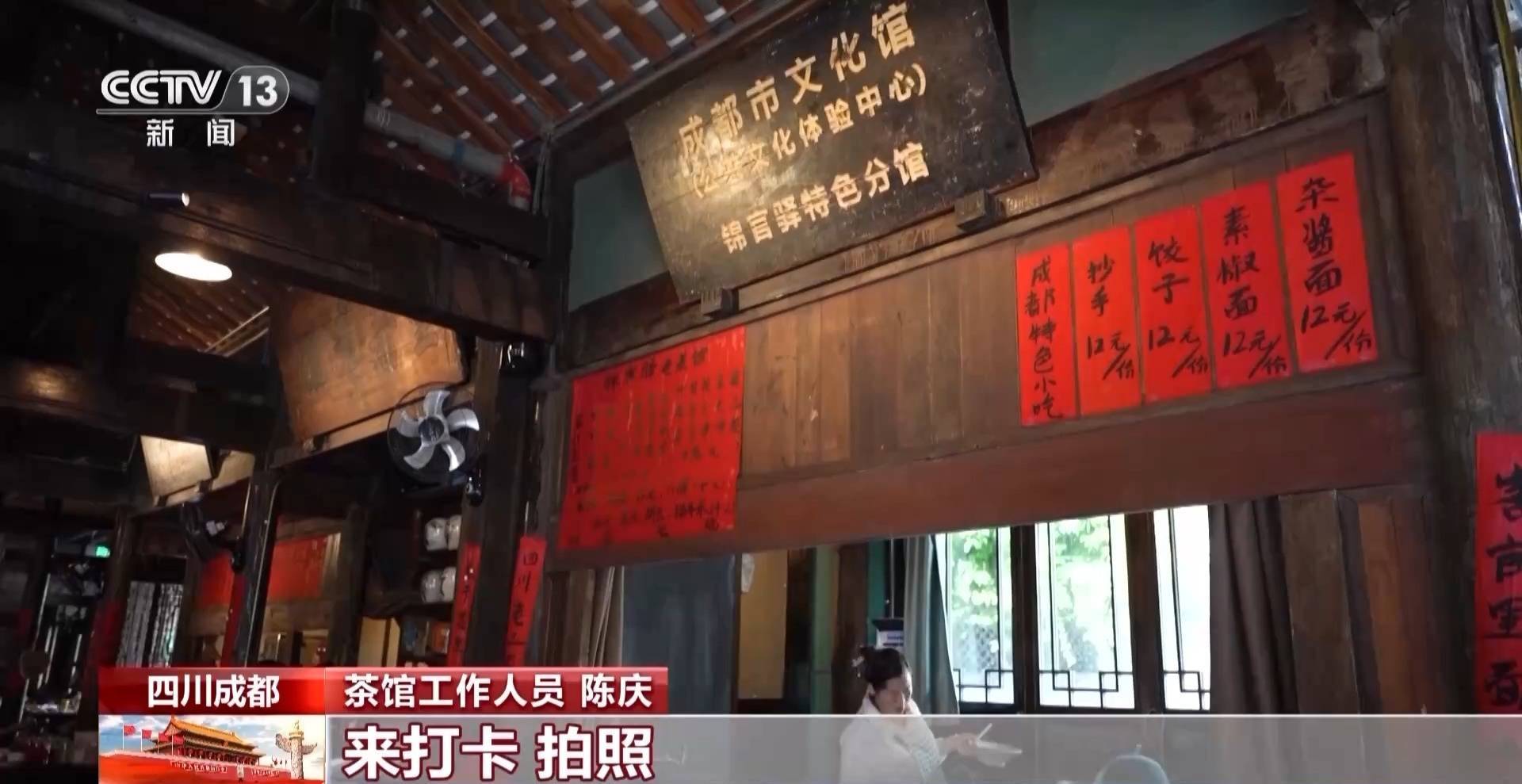 茶馆工作人员 陈庆:吸引了很多年轻人和外地游客来打卡、拍照,要让大家来感受我们中国的传统文化。