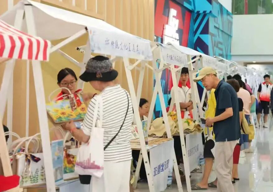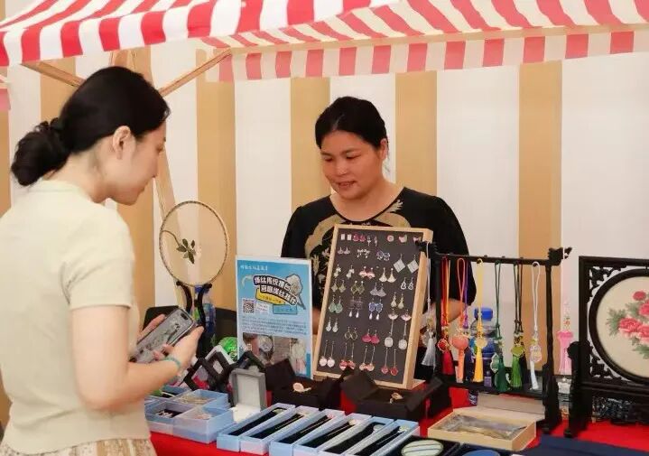 从普陀的老字号美食,到南京的璀璨云锦、苏州的精妙缂丝、南通的精美剪纸、泰州的特色好物……沪宁沿线相关城市工会带来的特色文化产品琳琅满目,吸引职工们纷纷驻足欣赏,在指尖与目光中感受江南文化的深厚底蕴与独特魅力。莫奈油画体验、花艺草帽制作、掐丝珐琅、蝶古巴特环保袋、手鞠球、软陶制作、书画创作等非遗与美育体验区更是人头攒动。职工们在动手创作中,体验匠心与灵感的碰撞,放松了身心,也滋养了情怀。现场还设置了中秋钓“月饼”、工会知识问答、历史事件连连看等趣味集章环节,吸引了新就业形态劳动者及职工群众踊跃参与,在欢声笑语中增进了对工会和传统文化的了解。
