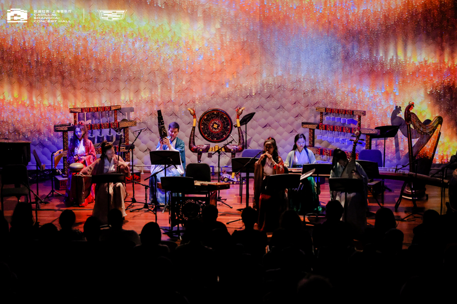 本季演出围绕清明、端午、中秋、冬至四个节点展开,每一场都别具匠心。4月5日清明小长假期间,《风雅弦歌——百年古谱音乐会》率先亮相,以《乐律全书》《白石道人歌曲》等古籍中的律吕字谱、工尺谱为蓝本,让沉睡于故纸堆中的古代诗词歌曲经由当代丝竹清音重新跃然耳际。6月21日《红楼绮梦——江南丝竹音乐会》则用丝竹勾勒《红楼梦》的万千风华,既有《枉凝眉》《葬花吟》等影视金曲的深情改编,也有越韵丝竹版《天上掉下个林妹妹》带来的耳目一新体验。